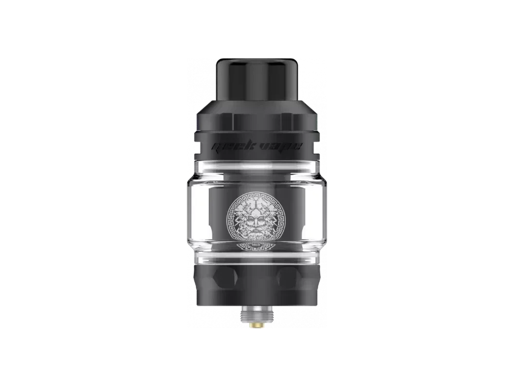 Der Z Sub-Ohm von GeekVape ist ein Clearomizer für E-Zigaretten mit einem Tankvolumen von 5 Millilitern, Plug And Pull Coils, integriertem Top Filling-System und stufenlos regelbarer Top Airflow Control. Zum Lieferumfang des Sets zählen zwei passende Mesh Verdampferköpfe aus der GeekVape Mesh Z-Serie. Mit Widerstandswerten von 0,4 bzw. 0,2 Ohm unterstützen die Heads das subohme Vapen mit direkter Lungeninhalation. Das Plug And Pull Design der Verdampferköpfe ermöglicht einen schnellen Wechsel des Heads ohne schrauben. Dank seines genormten 510er Pin kann der GeekVape Z Sub-Ohm mit nahezu allen handelsüblichen Akkus oder Akkuträgern kombiniert werden. Namensgebend für den Clearomizer ist Z, der Göttervater aus der griechischen Mythologie, dessen Konterfei auch den Kamin des Geräts ziert. Nachdem der Hersteller GeekVape mit der Z-Serie zunächst auf Rebuildable Atomizer setzte, fließen die Erfahrungen aus der Reihe mit dem Z Sub-Ohm erstmalig in das Design eines klassischen Tankverdampfers ein.